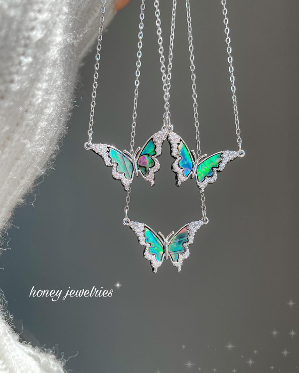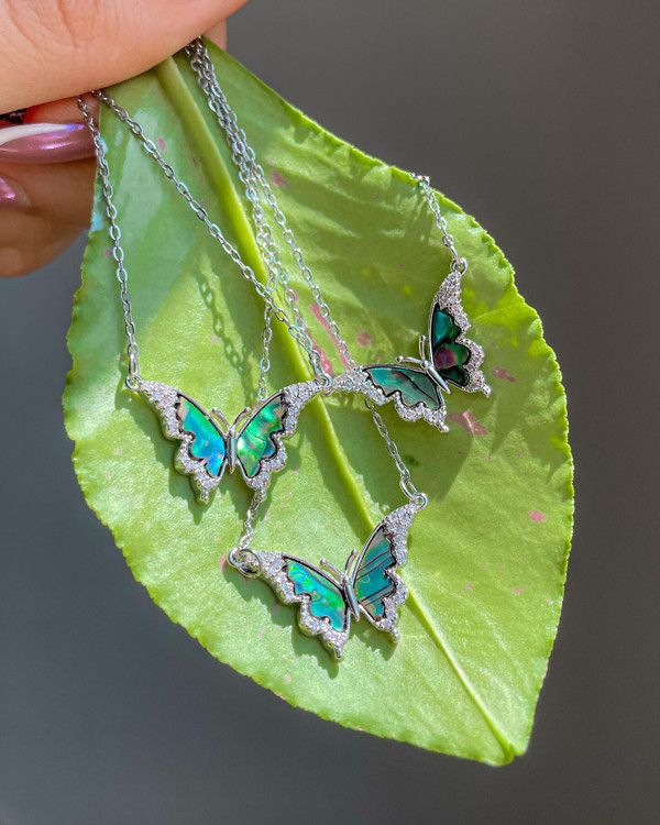 اینکه هرکدوم از گردنبندا طرح خاص خودشونو دارن رنگبندیشون یکیه ها ولی هرکدوم مثل پروانه های واقعی یه طرح منحصر به فرد دارن