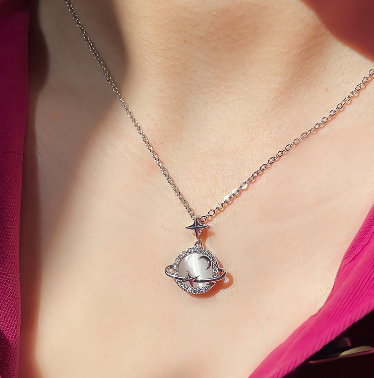 گردنبند زحل نقره ای
