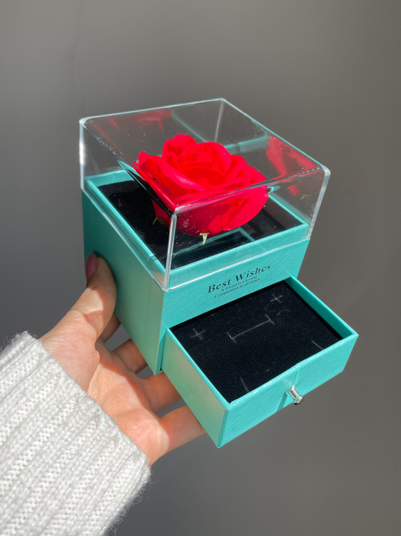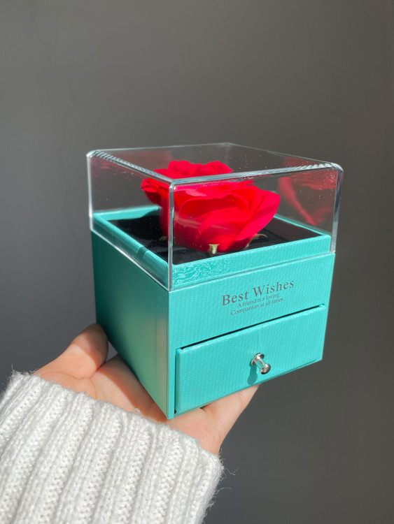 ست کامل داخلش جا میشه 🩵 قسمت شیشه ای ازش جدا میشه و گلش جاودان ومعطره