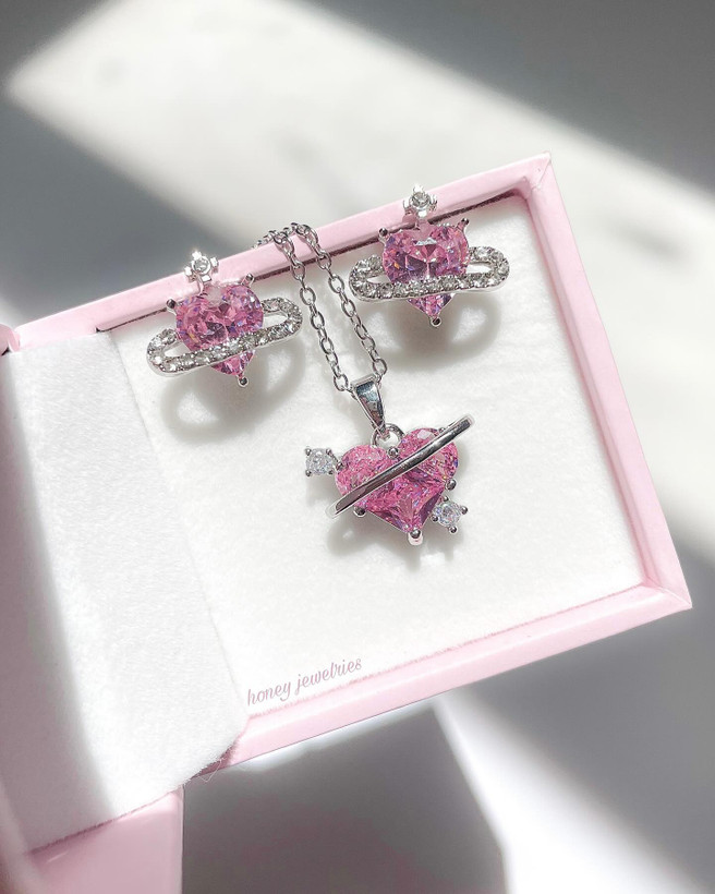 نیم ست گردنبند و گوشواره قلب زحل💞