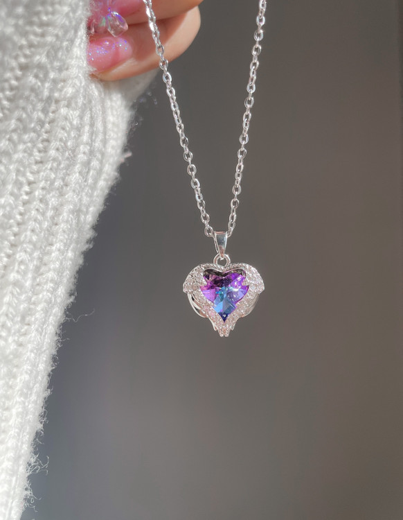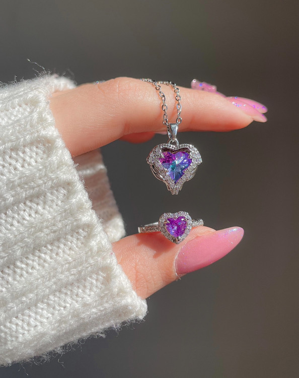 ست گردنبند و انگشتر قلب بنفش