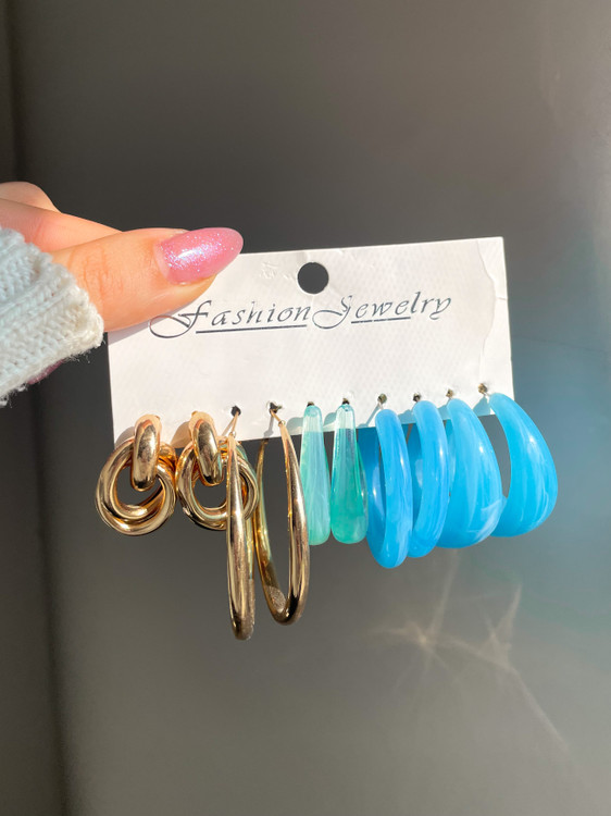 پنج جفت گوشواره باهم ، مدلای رنگی رنگ ثابت طلایی ها مراقبتی و بهتره اب و مواد شوینده نخوره