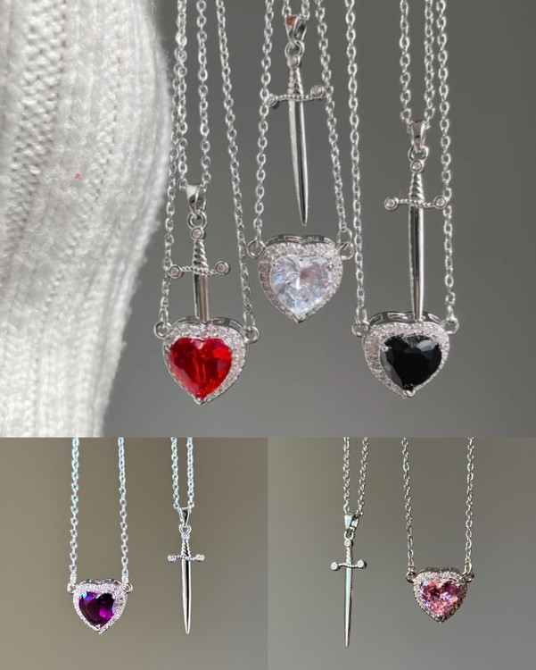 ست گردنبند قلب و شمشیر رنگبندی