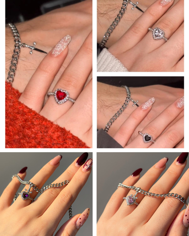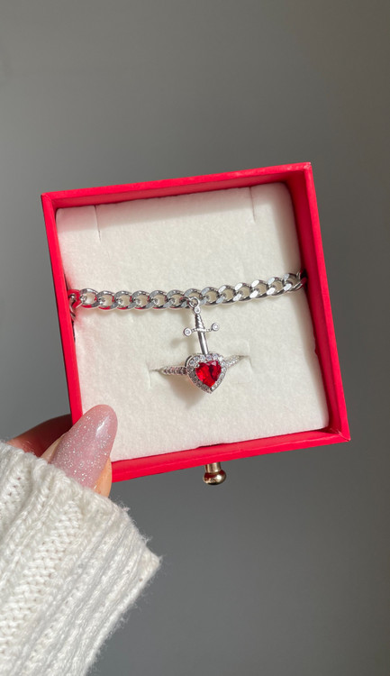 ست دستبند و انگشتر قلب و شمشیر رنگبندی