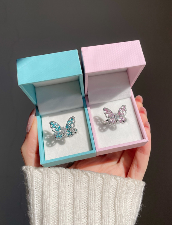 انگشتر پروانه صورتی و آبی ملیح