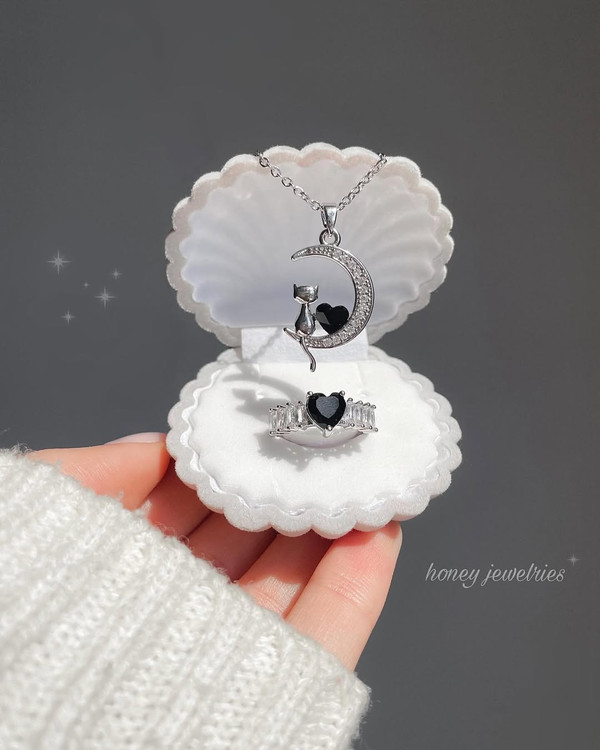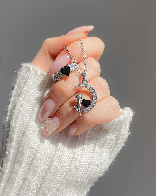 ست گردنبند و انگشتر پیشی مشکی