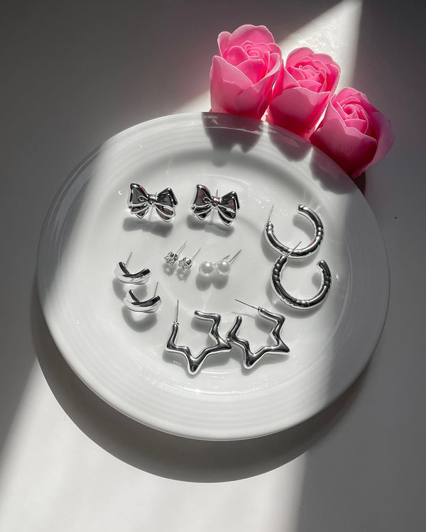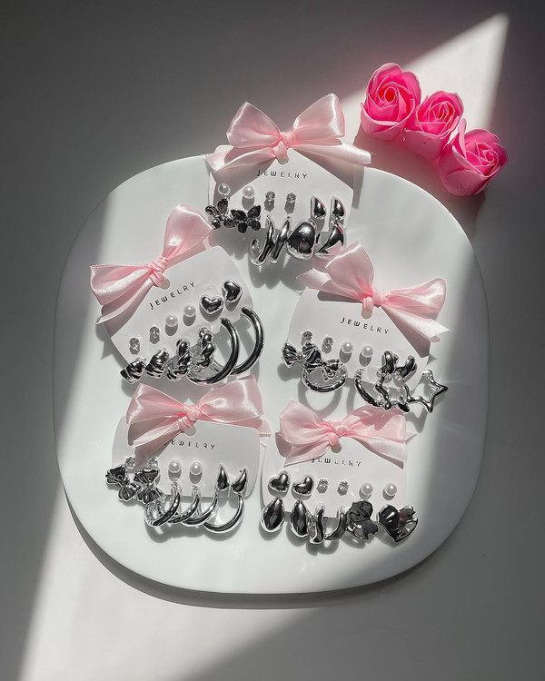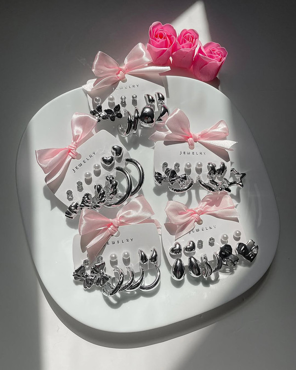 شیش جفت گوشواره به این نازی باهم /من ؟! اونم انقدر کاربردی که تک تک مدلاش قشنگ باشه و با کیفیت تازه گوشواره ها سبک هم هستن و اصلا گوشتون رو اذیت نمیکنن و همینطور ابکاری شده و ضد حساسیتن