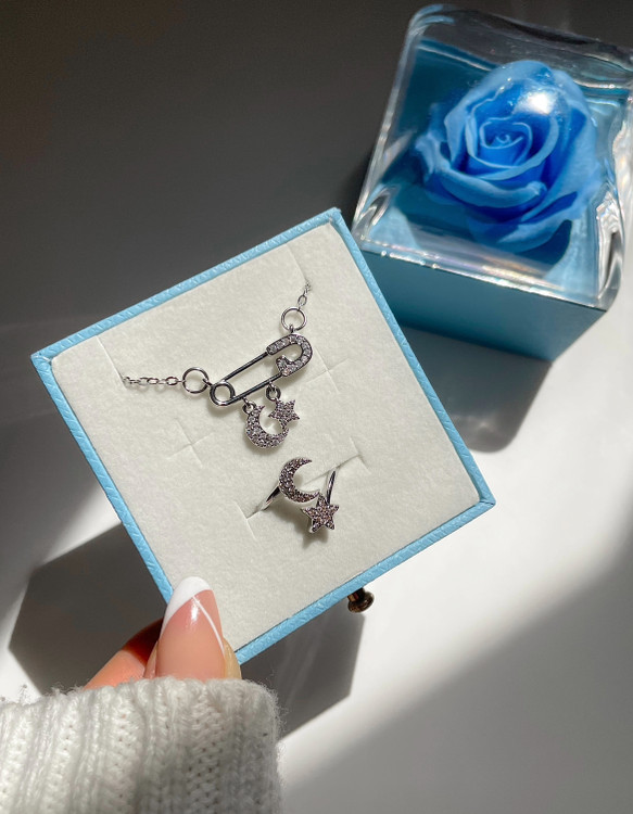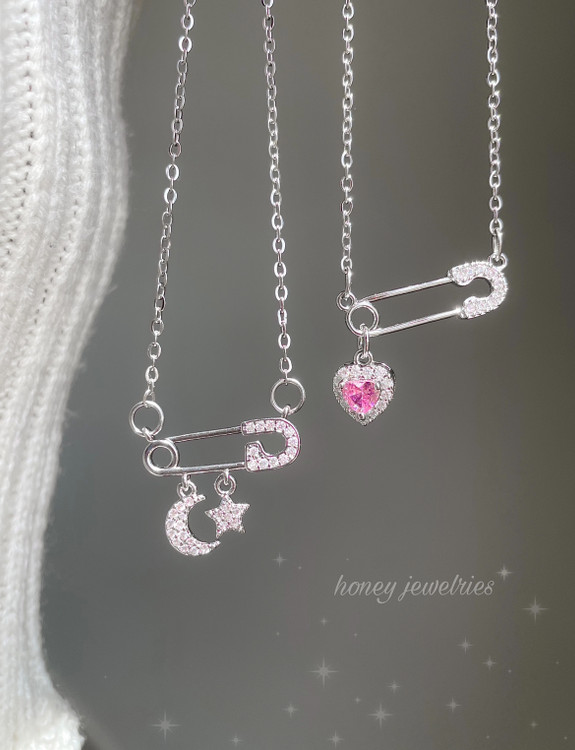 گردنبند سنجاق قفلی قلب ، ماه