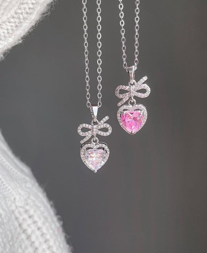 گردنبند پاپیون سفید و صورتی
