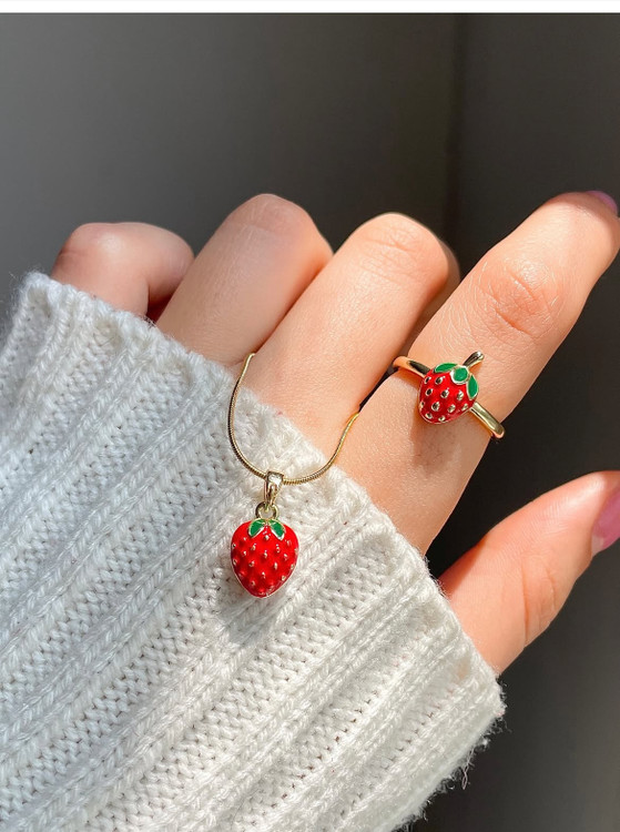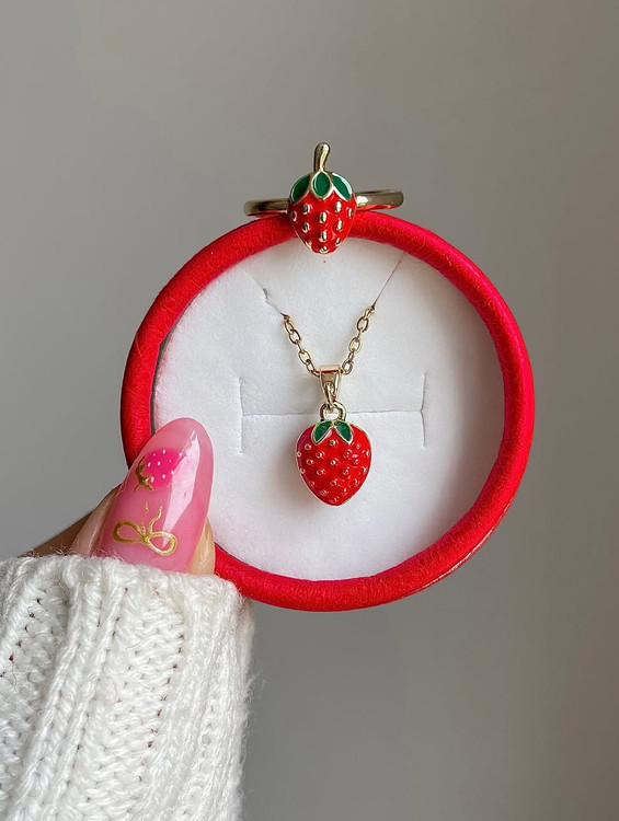 ست گردنبند و انگشتر توت فرنگی