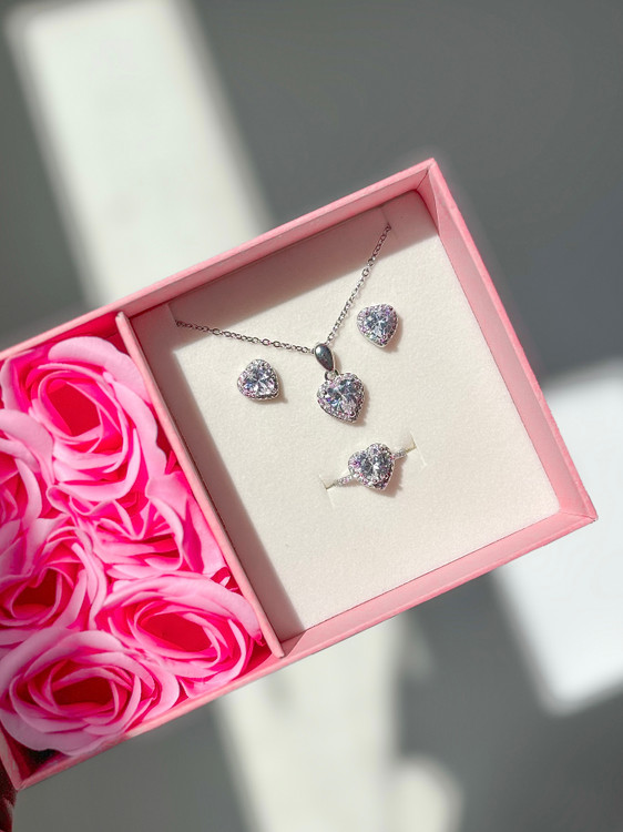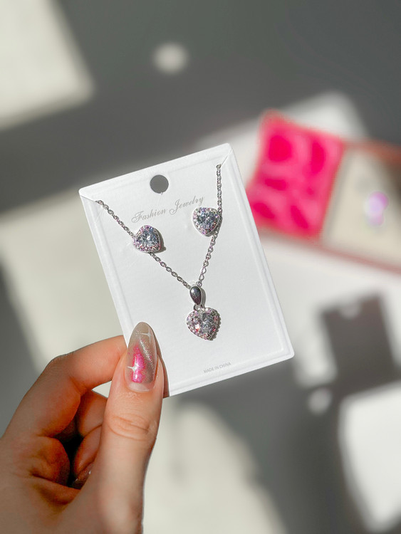 نیم ست جواهری قلب سفید 🤍