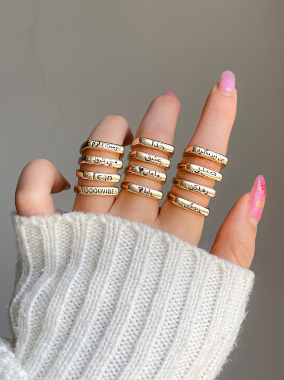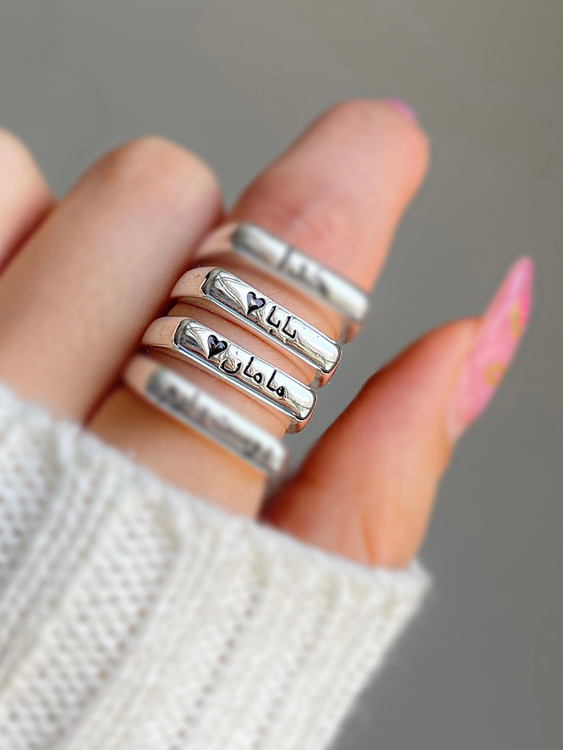 انگشتر تکست «مامان » «بابا» طلایی و نقره ای