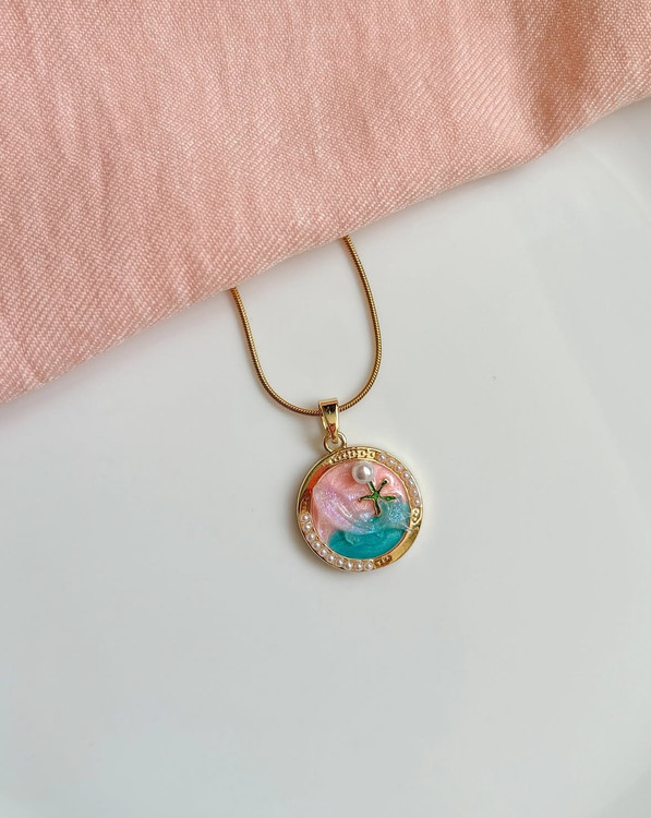 زنجیر استیل رنگ ثابت پلاک مینا کاری شده و شاین دار
