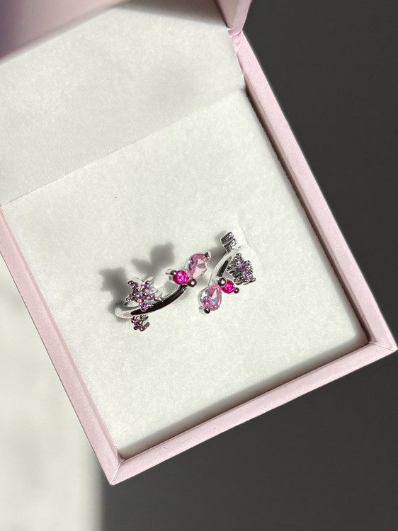 انگشتر شاخه و شکوفه بنفش نقره ای