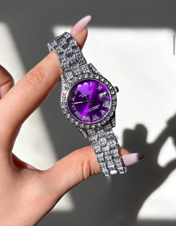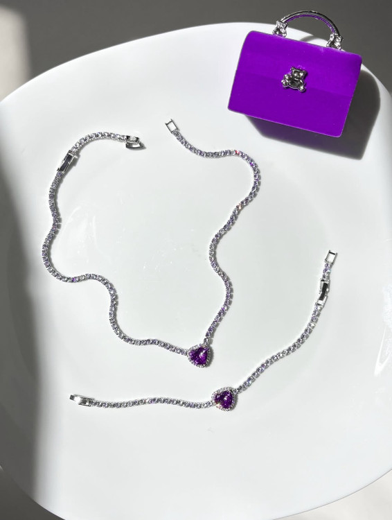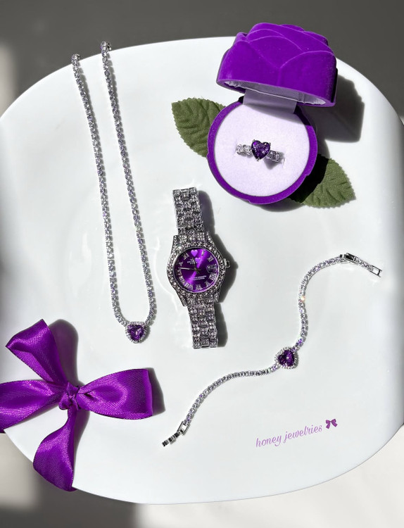 ست فول نگین بنفش گردنبند ، ساعت ، دستبند ، انگشتر« همراه باکس»