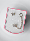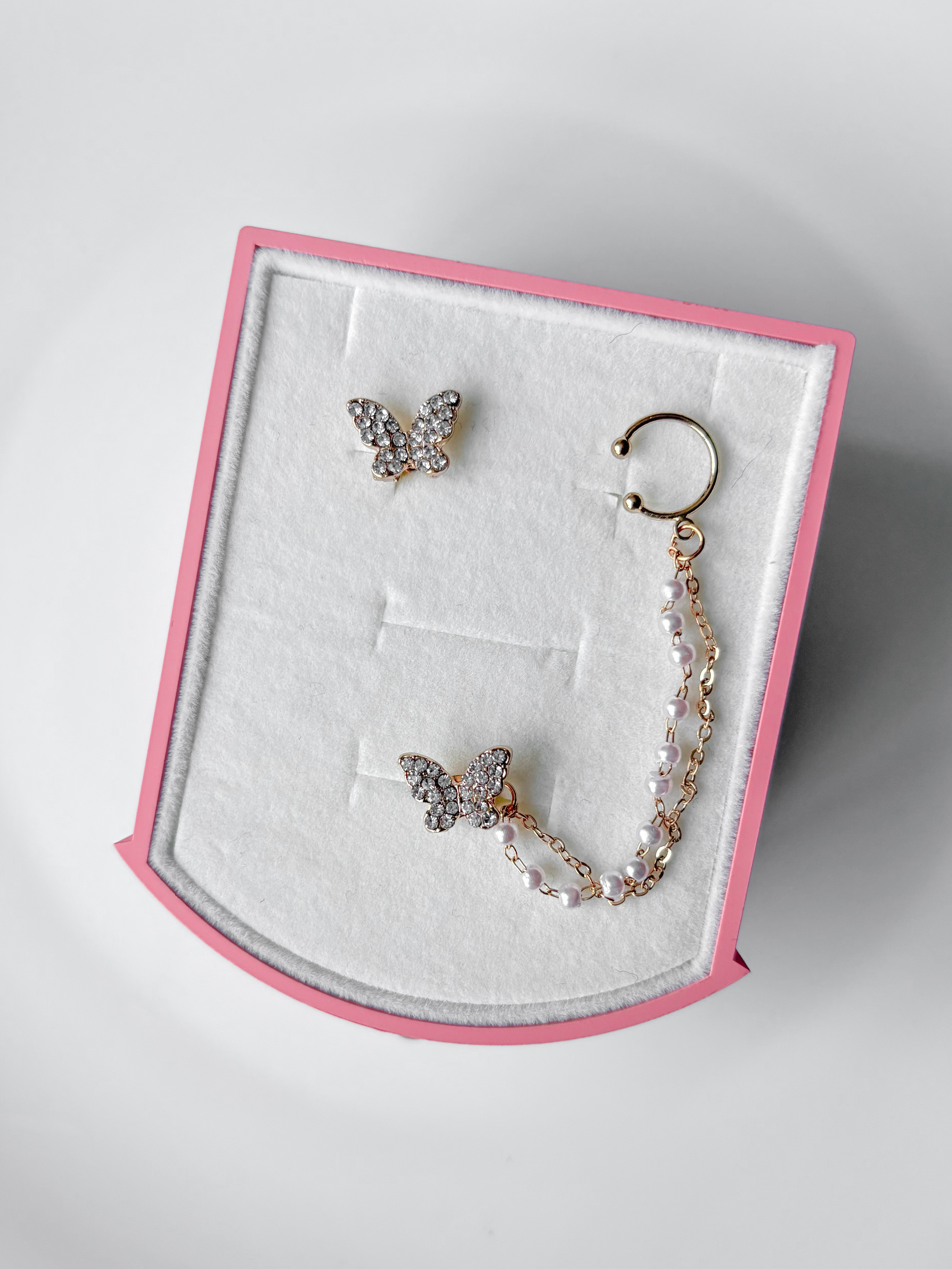 قسمتی که به لاله گوش وصل میشه نیاز به سوراخ نداره. زنجیر مرواریدیش قابلیت جدا شدن از پروانه رو داره و میتونین با گوشواره های دیگه هم استفاده کنید . این مدل دوتا گوشواره پروانه داره