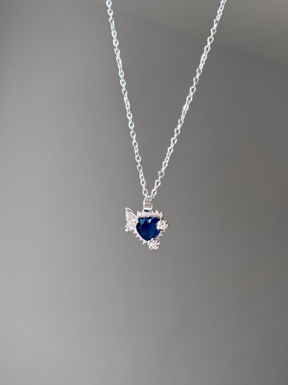 گردنبند قلب و پروانه آبی تیره