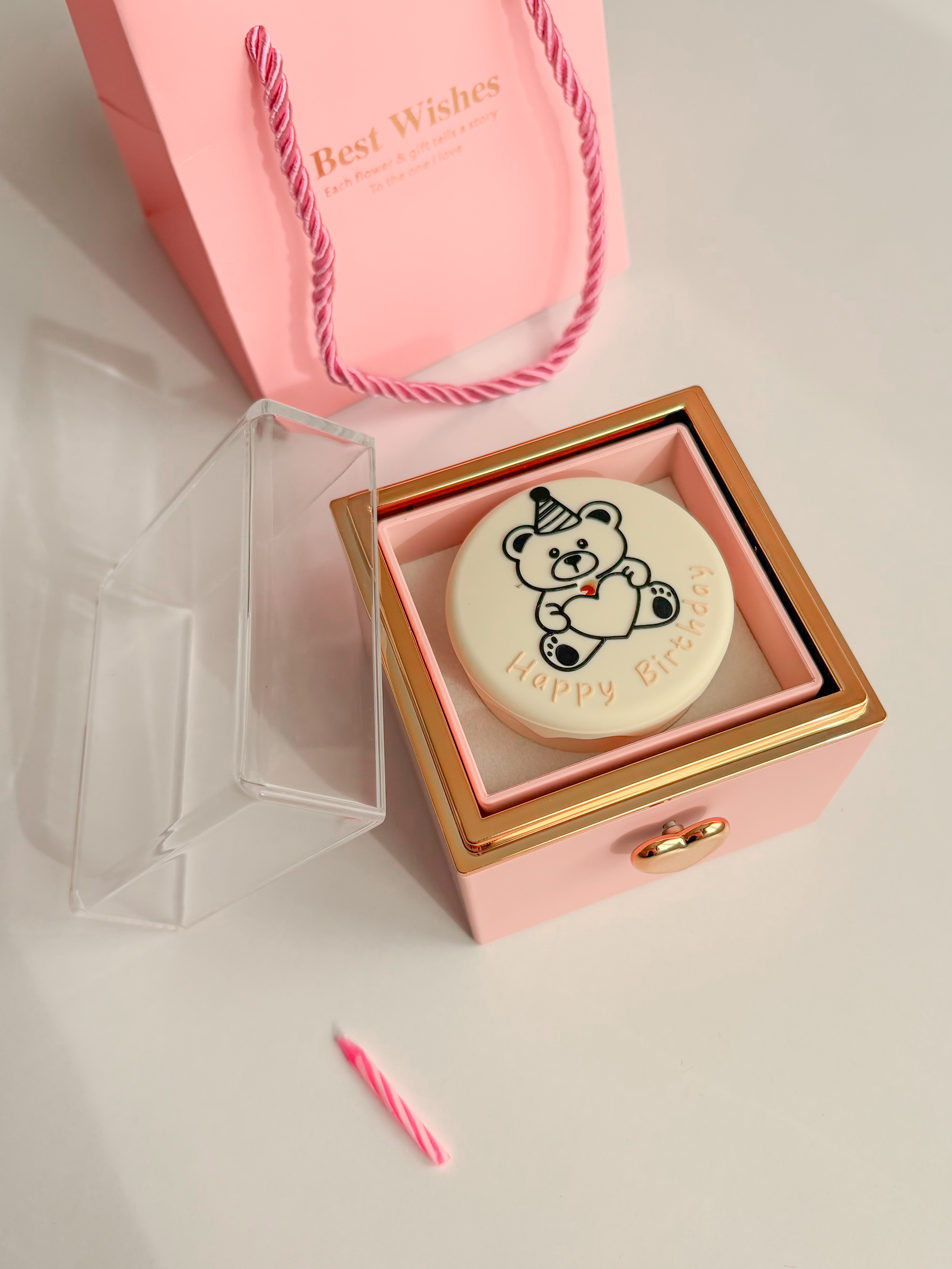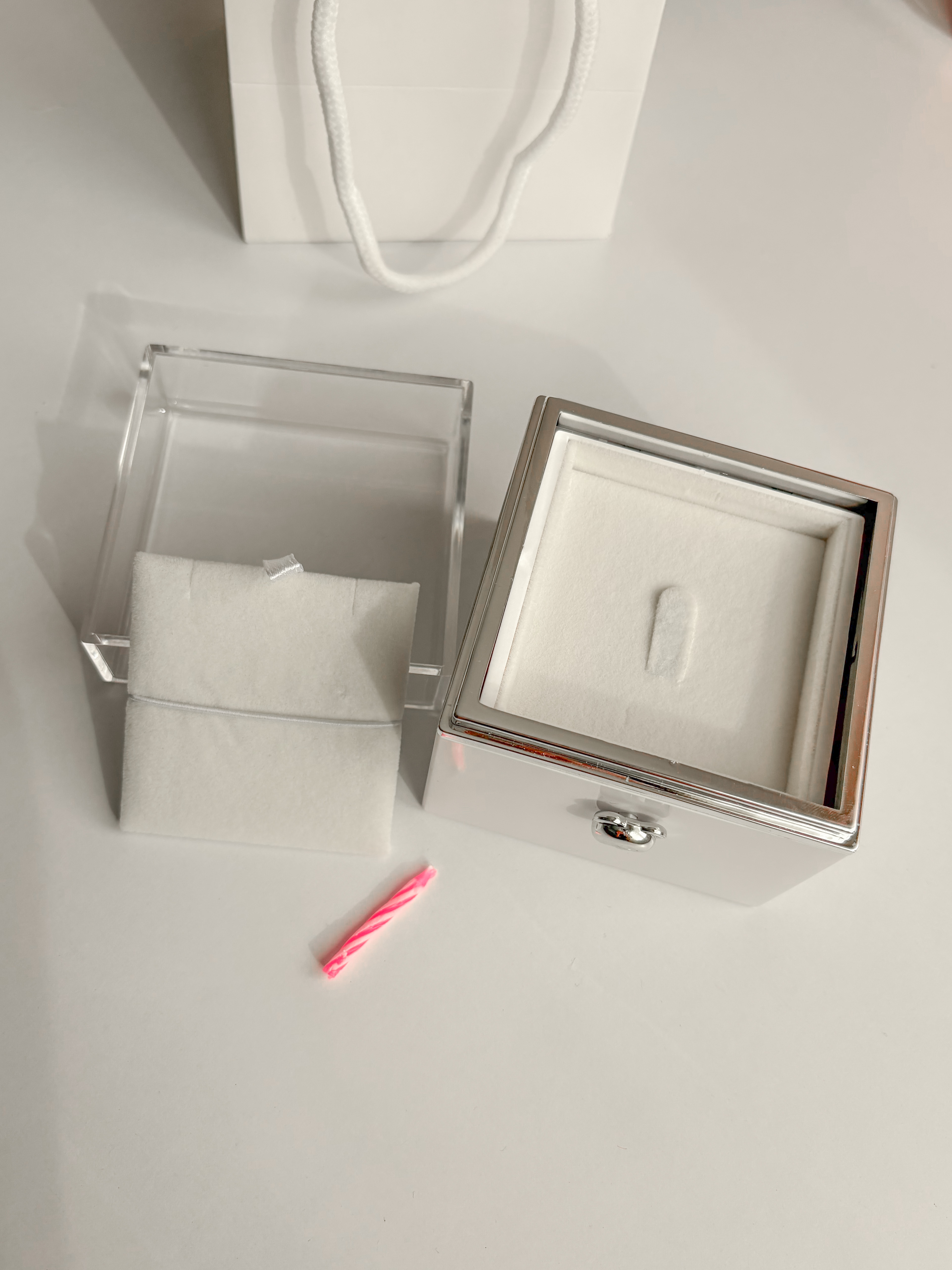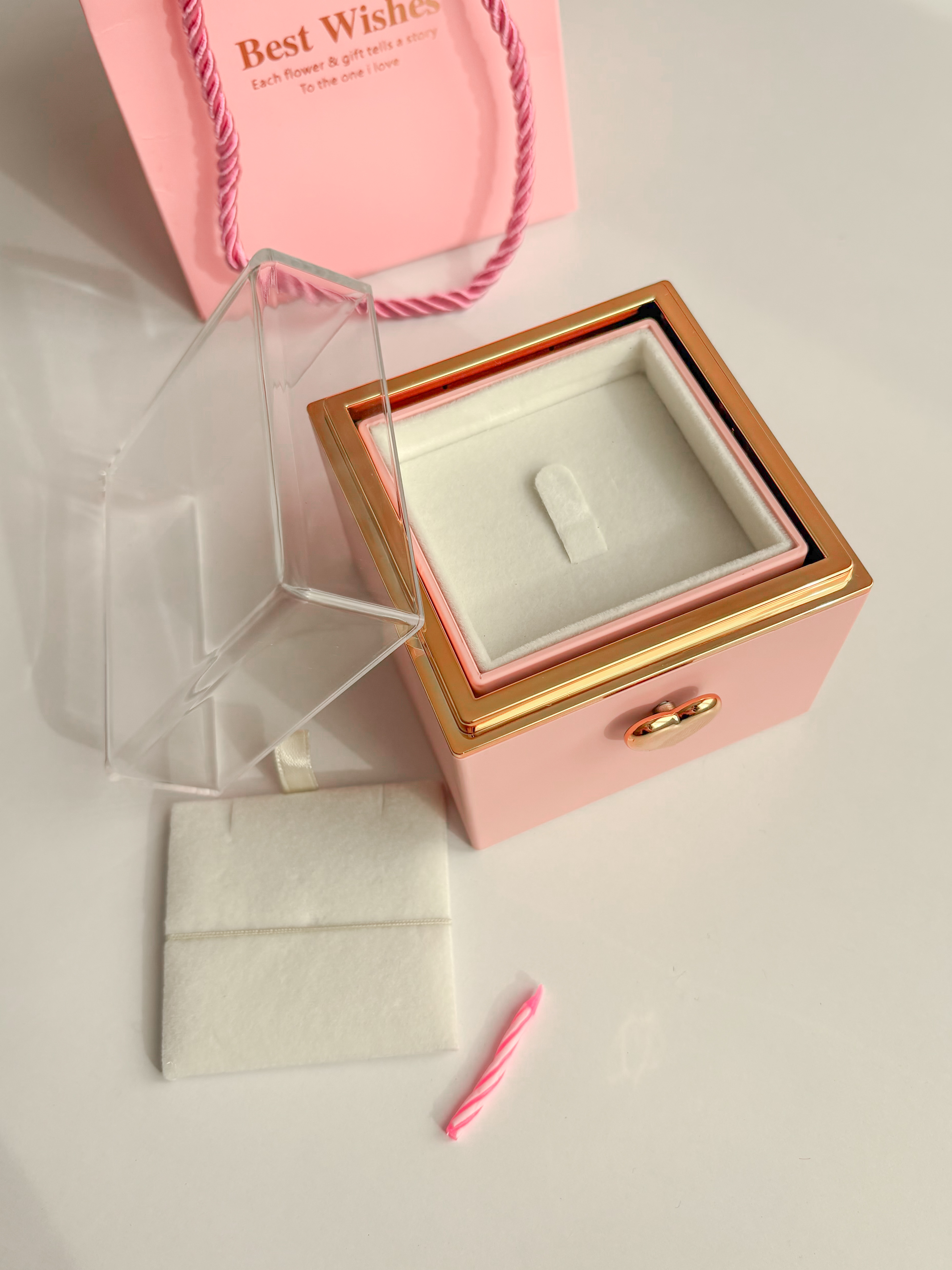 باکس وارداتیه و با کیفیت فوق العاده ، شمع و بگ دستی کنارش داره ، میتونین داخلش انگشتر و گردنبند بزارید