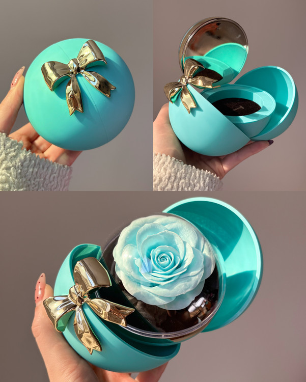 باکس گل جاودان سورپرایزی طرح گوی پاپیونی « آبی »