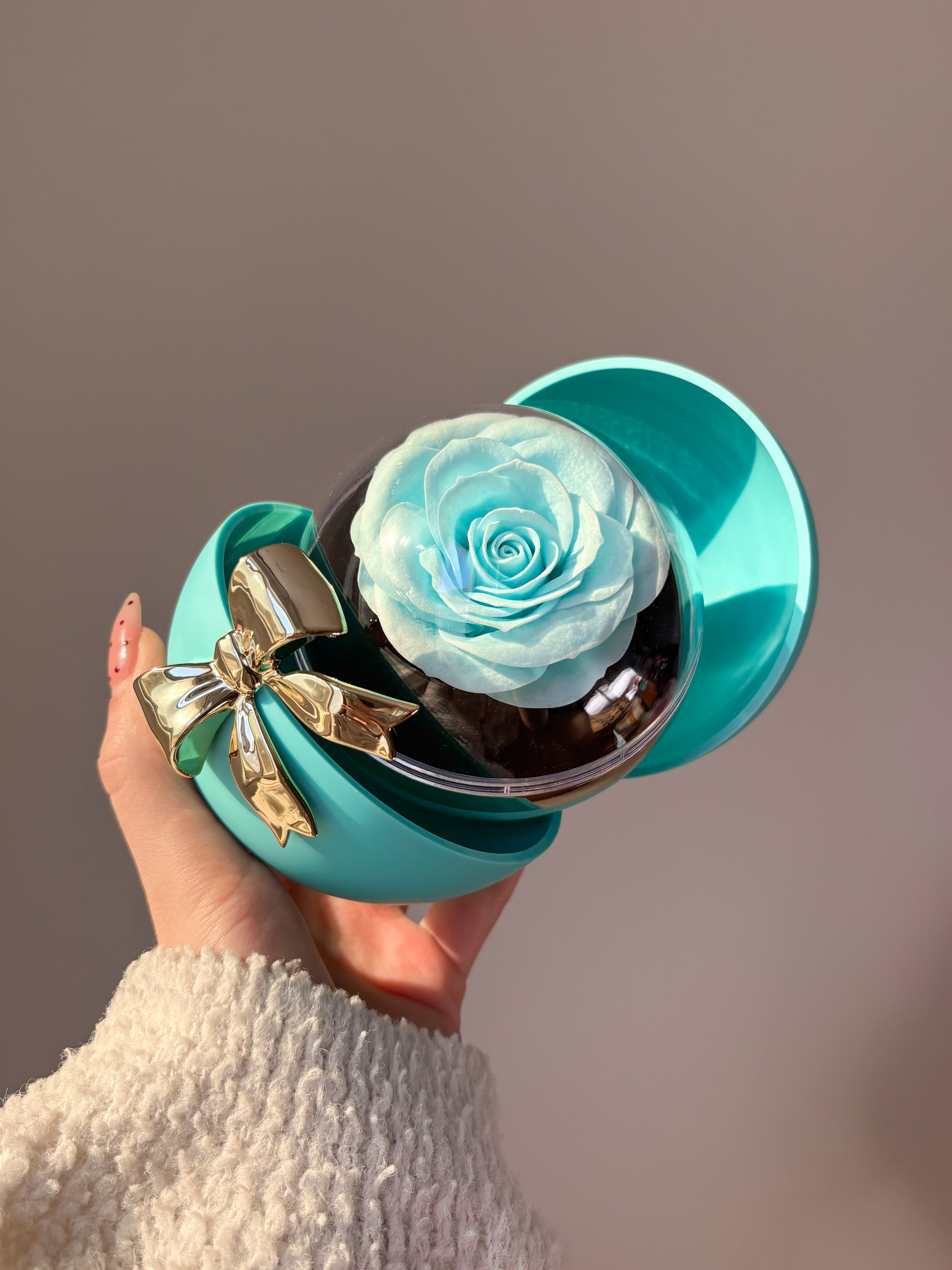 باکس گل جاودان سورپرایزی طرح گوی پاپیونی « آبی »