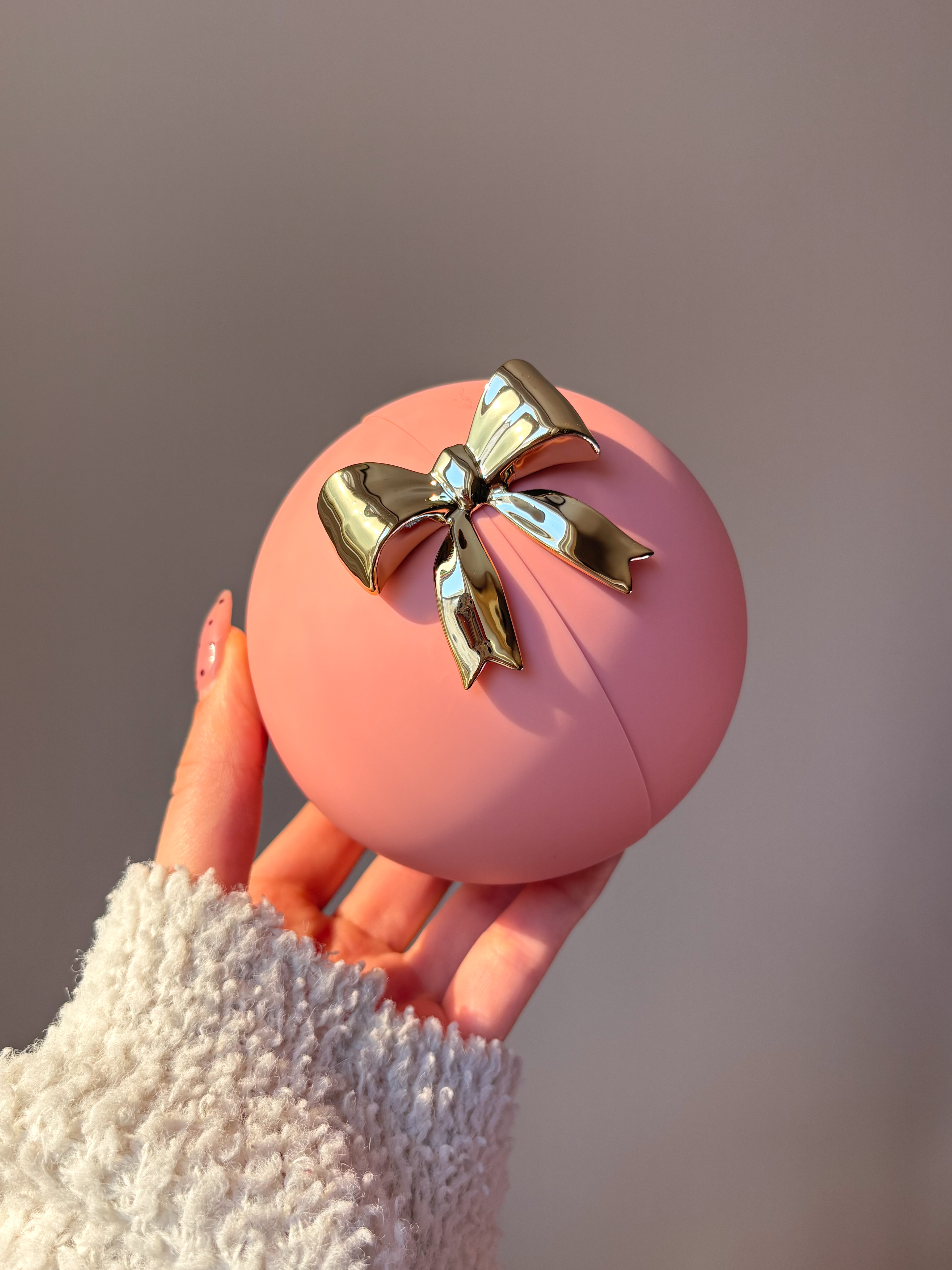 باکس گل جاودان سورپرایزی طرح گوی پاپیونی صورتی