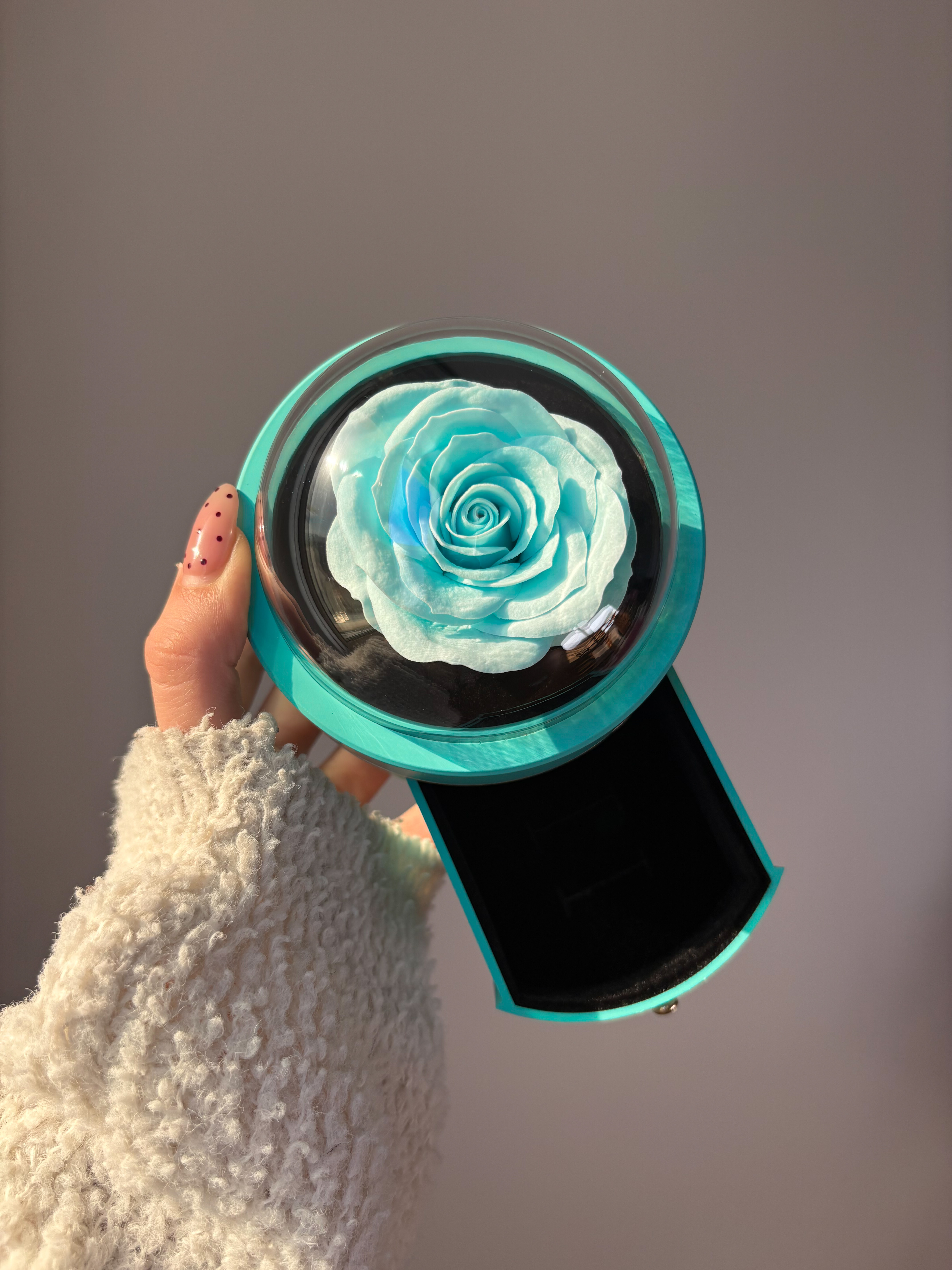 باکس گل جاودان سورپرایزی کشویی آبی
