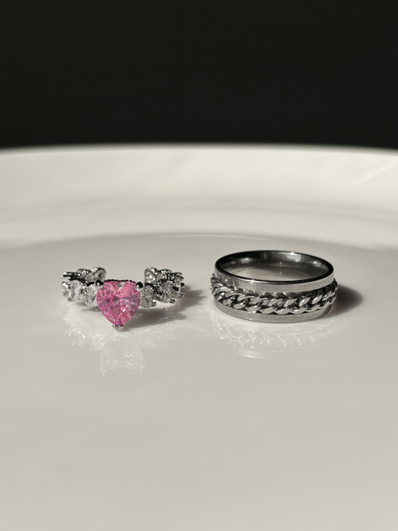 ست انگشتر دخترونه و پسرونه قلب صورتی