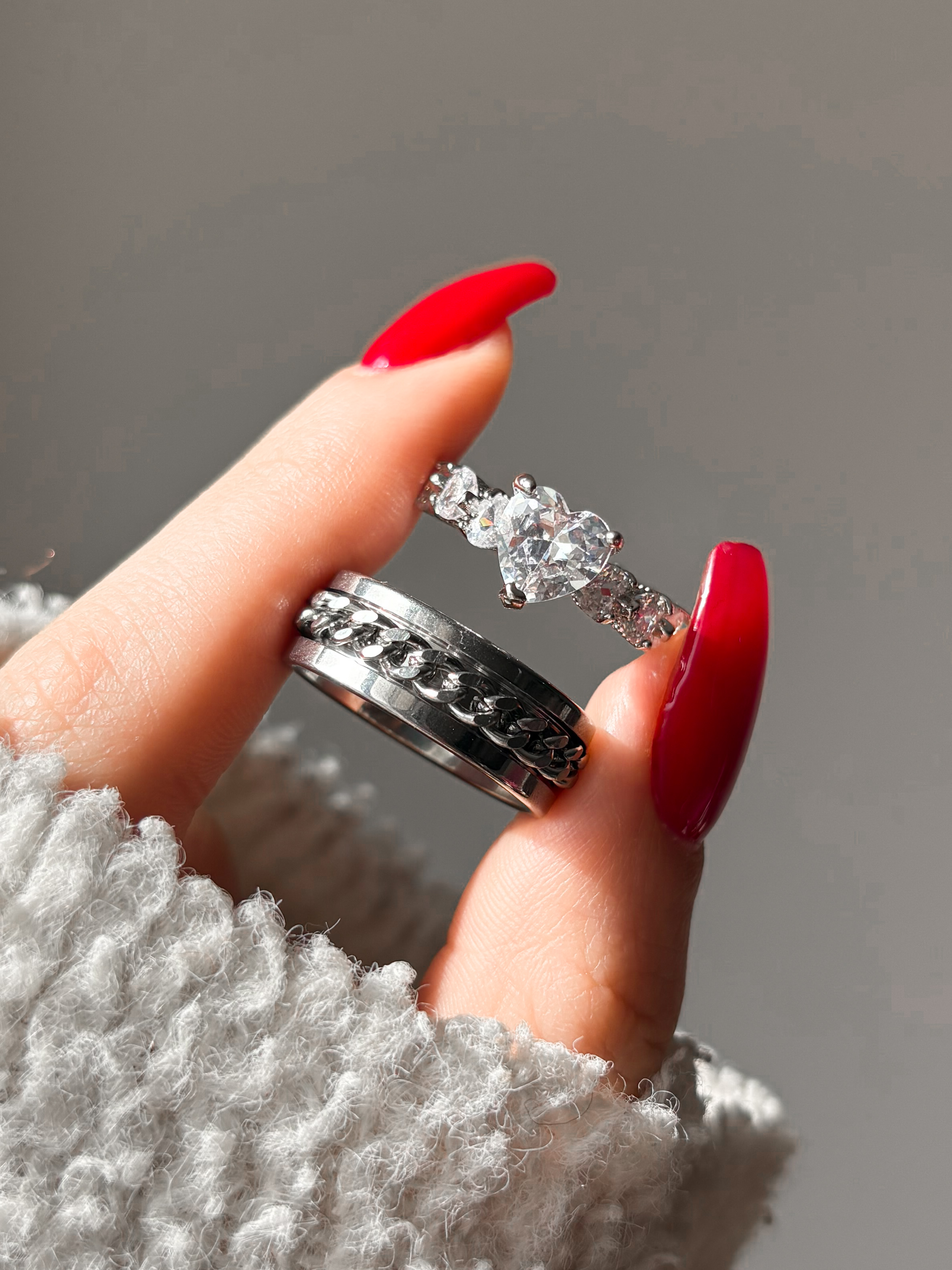 ست انگشتر دخترونه و پسرونه قلب سفید