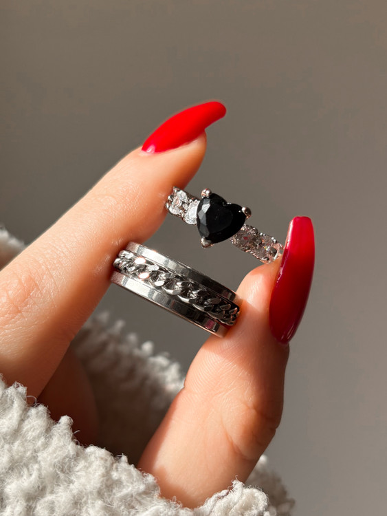 ست انگشتر دخترونه پسرونه قلب مشکی