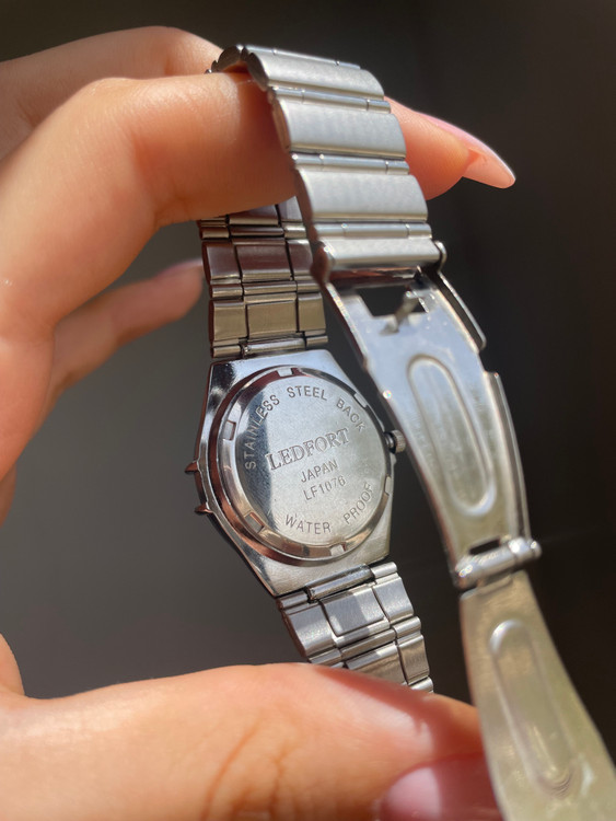 بند استیل رنگ ثابت ، ساخت ژاپن و waterproof پشت ساعت حک شده ، بند کر کره ای و سایز ساعت قابل تنظیمه😍