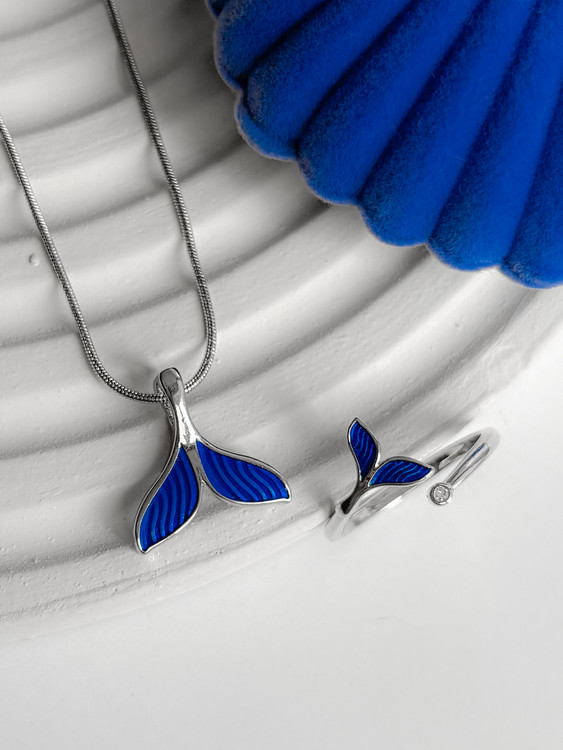 ست گردنبند و انگشتر دم وال آبی