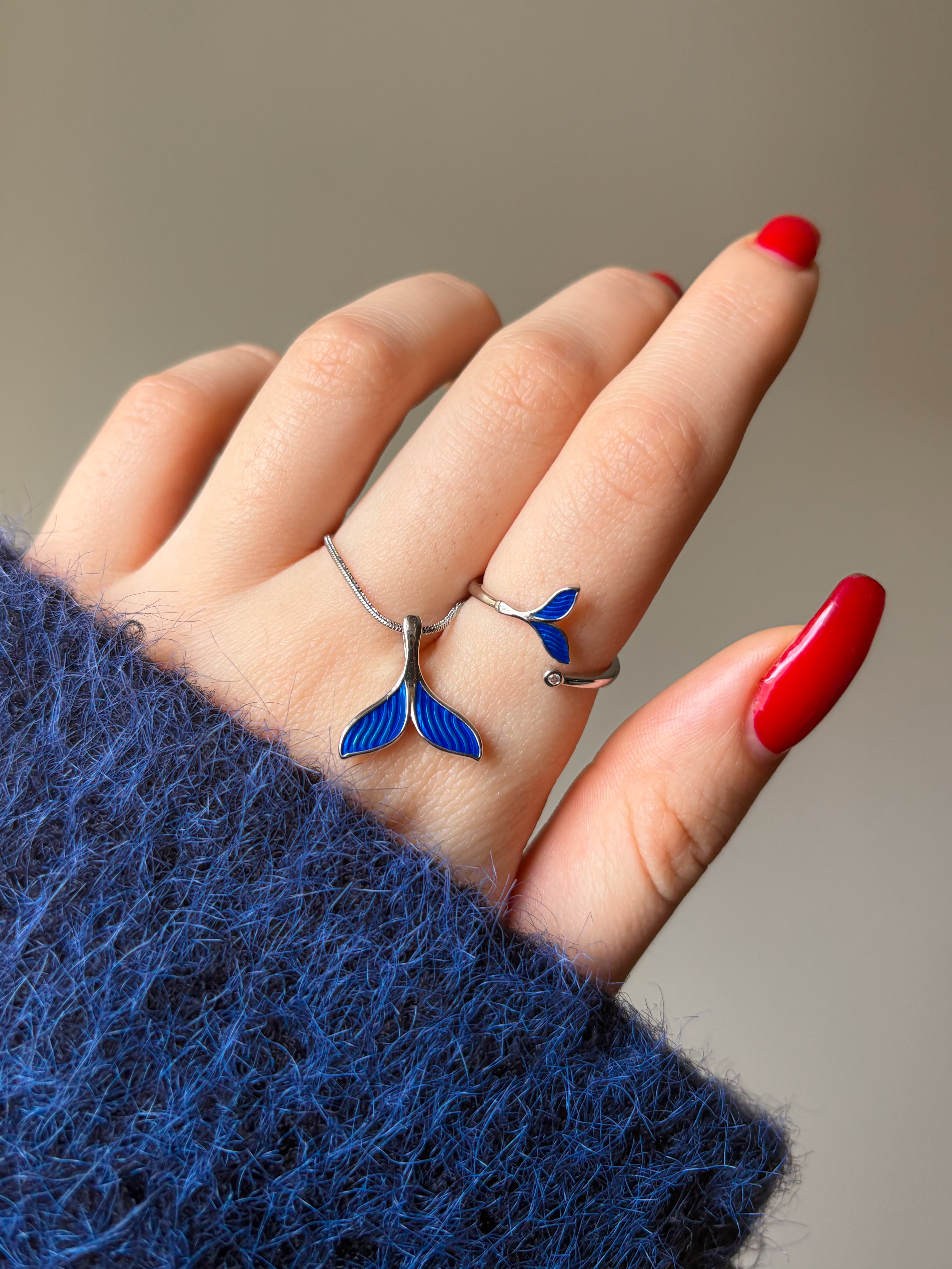 ست گردنبند و انگشتر دم وال آبی
